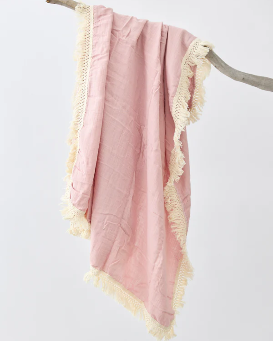 With its fringed design, this swaddle also doubles perfectly as a table cloth or dining centre piece.