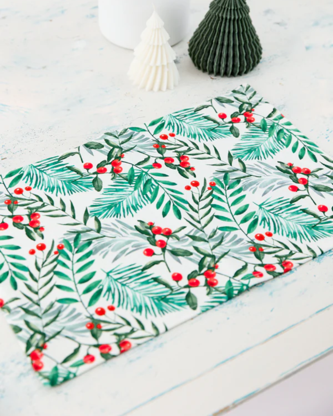 Bring festive cheer to your table with this charming 100% cotton placemat, featuring our exclusive peppercorn tree inspired watercolour design. Delightfully hand painted peppercorns and Australian native foliage in traditional reds and greens, making this the perfect addition to your Christmas table. Crafted with high-quality cotton, it’s both sturdy and durable, ensuring your table stays stylish throughout the season.